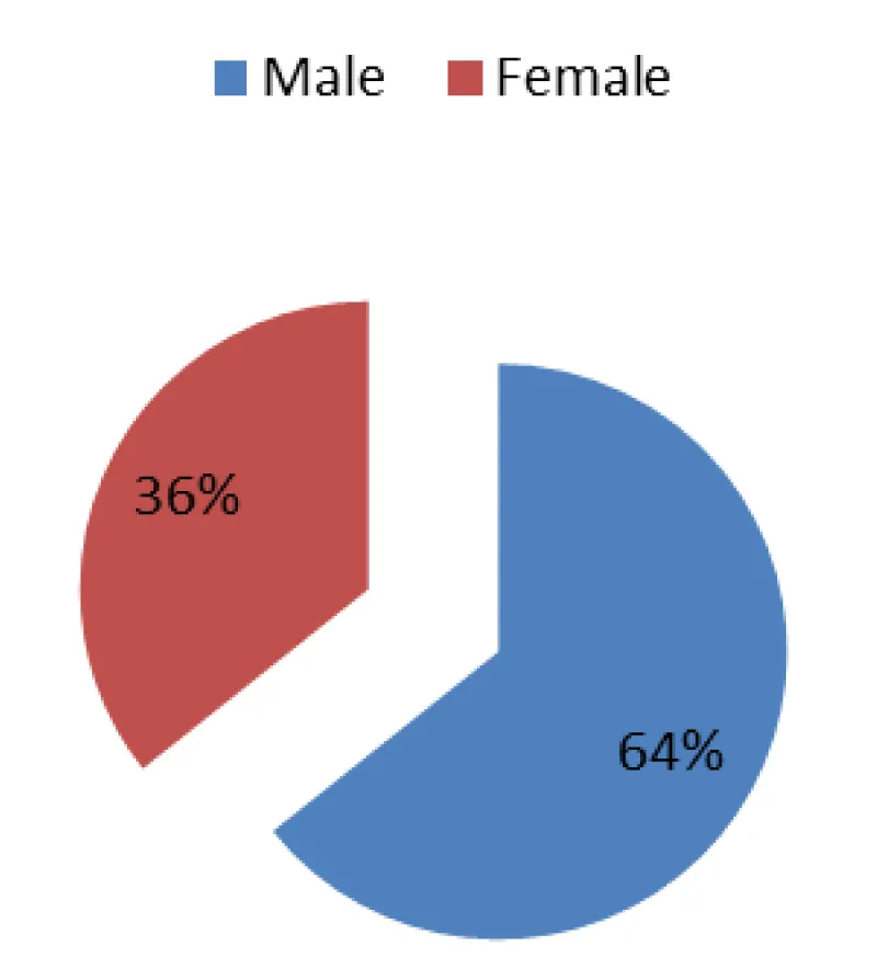 Out of 98 participants, 63(64%) were male and 35(36%) were female (Figure 1). Out of 98 participants, 31(31.36%) were in age group pf 18-22 years, 39(39.79%) were in age group of 23-26 years and 28(27.57%) were in age group of 27-30 year. Average of age was 25.22 ± 2.19 years. Semester wise students included in the study out of 98 26.53% belonged to 2nd semester. 32.65% belonged to 4th semester and 40.85% belonged to 6th semester (Table 1). After checking the association between Gender with anxiety and depression significant differences were found between both male and female with Anxiety at p-values less than 0.000 and with Depression at p-values less than 0.021. Significant association was founded between age and Anxiety with p-value 0.011. Significant association was founded between age and depression with p-value 0.030. Significant association was founded between semester and anxiety, depression with p-value 0.000. Significant association was founded between pressure from parents and Anxiety with p-value 0.006. Significant association was founded between pressure from parents and depression with p-value 0.001. Significant association was founded between Concern about future and Anxiety with p-value 0.001. Significant association was founded between Concern about future and depression with p-value 0.001 (Table 2).