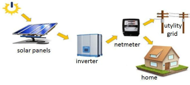 The electricity generated by the PV-technology is fed into the grid systems. In this way the efficiency of grid systems is increased. Electricity supply with this system is possible in two ways: 1) from the grid to the user’s home and 2) from the user’s house to the grid. These modalities of use make this solar system very useful and easy to apply. The system works by first installing solar panels on the user’s house and connecting them to the electrical network. Solar panels convert solar energy into Direct Current (DC). This electricity is then sent to a solar inverter, which translates direct current into Alternating Current (AC). Electrical appliances in the consumer’s home are powered by this alternating current (Figure 4). This electricity is also supplied to the grid and is thus available for everyday use. Because in this way the total energy produced is usually much higher than what a household needs, the solar converter regulates the voltage and the amount of electricity supplied to the household. The network meter is a significant feature. It is a tool that records the energy supplied to the network and the energy consumption. Network meter is a tool that records the energy consumption and the energy supplied to the network. In this way, the remaining amount of energy is recorded and a bill is sent to the consumer at the end of each month [16] (Figure 5).