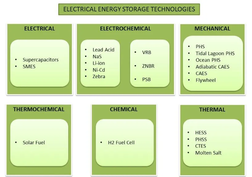 ο Flow battery: Vanadium Redox Battery (VRB) [32-34], Zinc–Bromine (ZnBr) [16,35], Polysulfide bromine battery (PSB) [13,16,36,37].