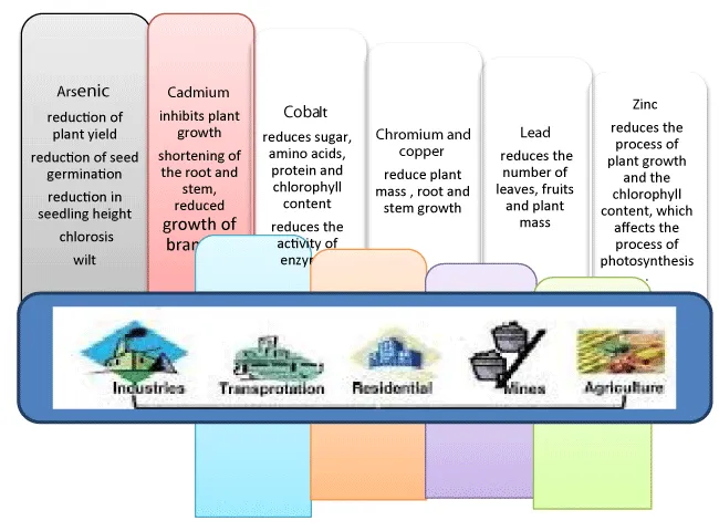 One of the most important causes of soil and air pollution is human industrial activity, as some heavy metals are produced from it. Irregularities in the discharge/emissions from iron and steel factories, batteries, paints, and ceramics into the water, these do not only contribute to water pollution, but negatively affect soil and living organisms, as the accumulation of chromium, lead, and mercury leads to biological changes in terms of changing the chemical composition of proteins and amino acids which affect living organisms [1]. Plants are also affected greatly by these minerals, as they absorb them, leading to their accumulation, which leads to weak oxidative stress, cell clumping and death. Research seeks to raise the rate of plant resistance to these minerals by reducing their absorption, which improves plant productivity and crop quality [2].