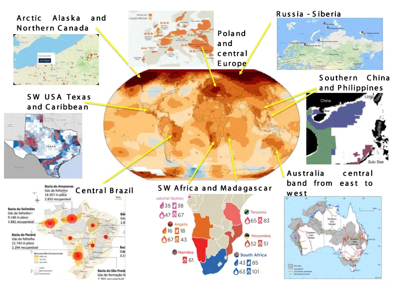 The geographical distribution of 2K+ hotspots is irrefutable direct experimental evidence that a substantial fraction of the global warming index (1950 - 2020) of ~ 1 K may be accounted for by enthalpy emissions from fracking operations in the shale gas industry as shown here in Figure 2.