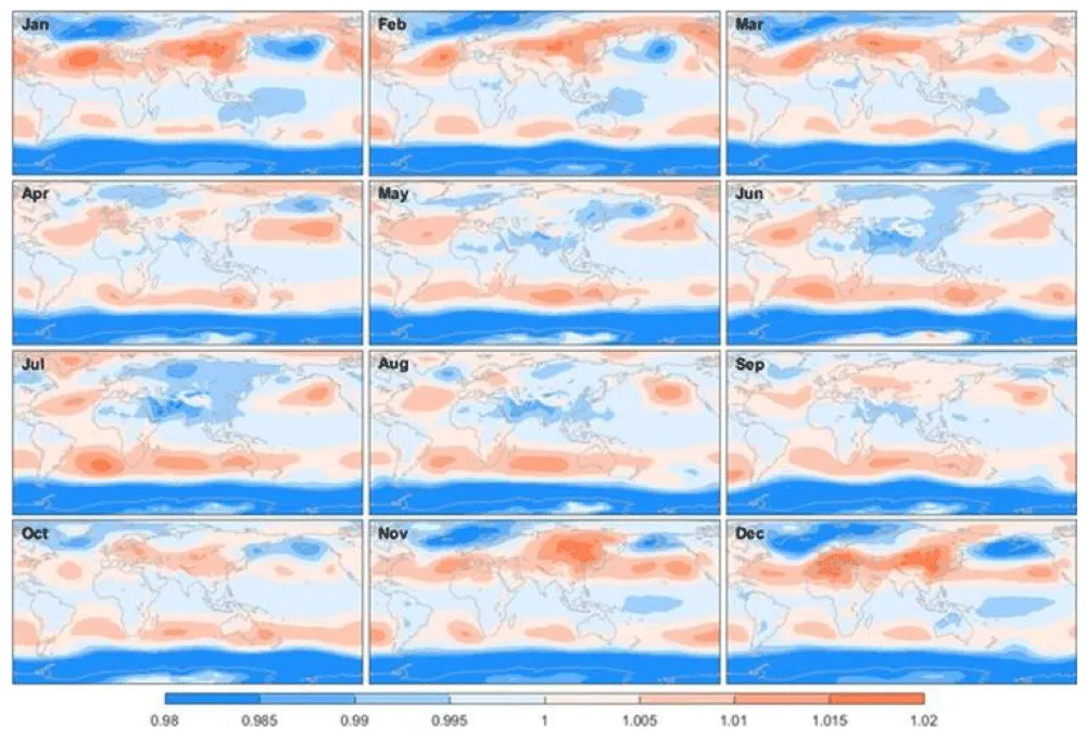 The warming distributions over predominantly populated land areas as reported by Jin et al., however, are inconsistent with the greenhouse-gas hypothesis. This article by Jin, et al. [5] actually confirms that the temperature increases contradict the greenhouse gas hypothesis since CO2 increases would lead to uniformly distributed anthropogenic enthalpy emissions. Both the NY Times 2019 global warming map in reference [3] and the analysis of Jin et al. confirm that the greenhouse gas hypothesis of a fully dispersed excess [CO2] disagrees with the geographically heterogeneous nature of the GWI global distribution.