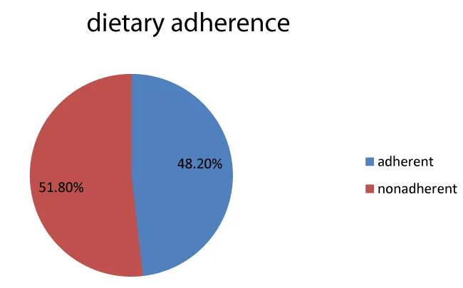 The study indicated, 200(51.8%) of the respondent were non-adherent to dietary recommendation (Table 4 and Figure 2).