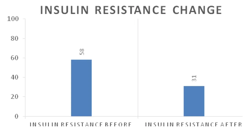 Before the treatment, 58 participants (58.6%) had IR and after 6 months of treatment, the number decreased to 31 with 31.3% improvement (p<0.001) (Figure 2).