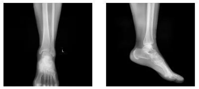 A 56-year-old woman was sent to the emergency department by her family. She sprained her left ankle when she went down the stairs. She had difficulty walking because of a painful left ankle. Specialized physical examination found tenderness in the anterolateral distal tibia and fibular neck. X-ray showed fractures in the tibia lateral border and fibular neck, with no evidence of inferior tibiofibular joint dislocation (Figures 1,2). A computed tomography scan confirmed the presence of Tillaux-Chaput and Volkmann fractures (Figures 3-5).