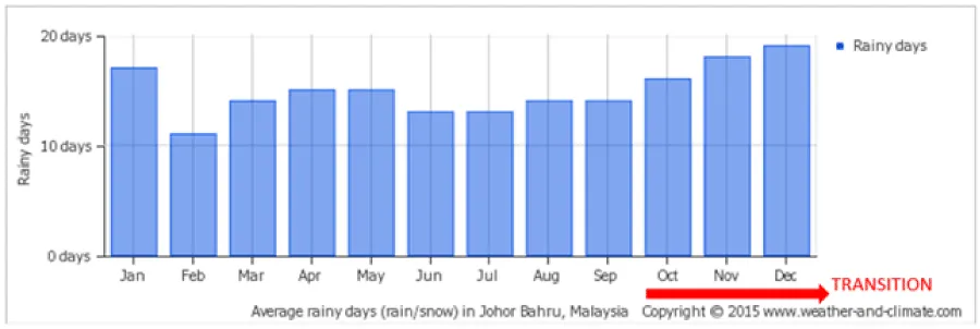 The research was conducted in two phases: field measurement in realistic conditions and computer simulation. The field measurement aims to validate the IES-VE simulation software for further building performance simulation. The recessed wall façade building is a third-floor office building located at UTM Johor-Bahru, Malaysia. However, the experiment was an elongated one, nonstop data recording for the whole period of seven (7) weeks (from October to December 2016). But, the period considered was from 7.00am to 5.00pm, being the office occupancy period. These months were selected because they are the weather months that exit from the driest months to the wettest months in Johor, Malaysia Figure 4.
