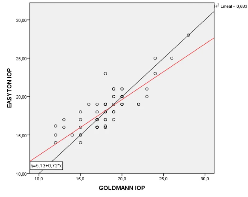 To evaluate the efficacy of TPST, we consider it important and necessary to carry out a prior evaluation of the diagnostic test, by assessing the repeatability of measurements, and a comparative study of GAT (gold standard) and TPST (with EASYTON tonometer) in healthy patients, without obvious corneal pathology. In this way, we could estimate the range of IOP values in patients with pathology, since, in these cases, we can only compare it with the digital determination of IOP.