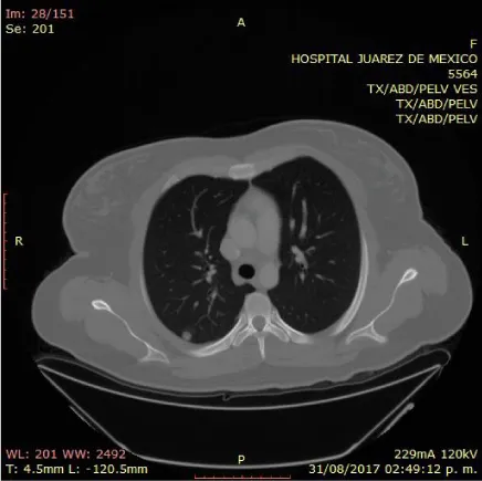 Choriocarcinomas, due to their great angioinvasion capacity, which facilitates their dissemination and encourages metastases to the lung, brain, liver and other organs, have early metastasis to the lung even in 80% of cases, in our case, pulmonary metastasis was diagnosed by imaging, confirming the great tumor vascular invasion; the majority die, even when diagnosed early to initiate appropriate chemotherapy, with a mortality rate of 10% to 15% [17,18]. This report describes a case that simulated an ectopic pregnancy, which underwent surgery of the administration of chemotherapy; We report that the reproductive prognosis is favorable and treatment with conservative surgery does not affect fertility. Ovarian germ cell malignancies are sometimes associated with pregnancy or term pregnancies are achieved after uncomplicated treatment with healthy term infants [19].
