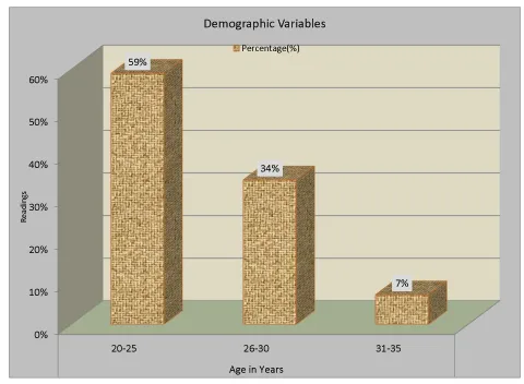 The table 1 shows the percentage of the socio demographic data of the male palestrati who were involved in musculoskeletal disorder. The table is divided into three categories age, gender, and occupation with their own percentage of involvement. The age is further divided into three categories according to their involvement, age from 20-25 is 59% involved, age from 26-30 is 34% involved and age from 31-35 is 7% involved so the age group of young adults 20-25 year have the highest involvement in MSD which is 59%. The second category is gender in which only male were taken as sample. The third category is occupation it is further divided into two categories students and workers the students has 64% of involvement and workers has 34% of involvement.