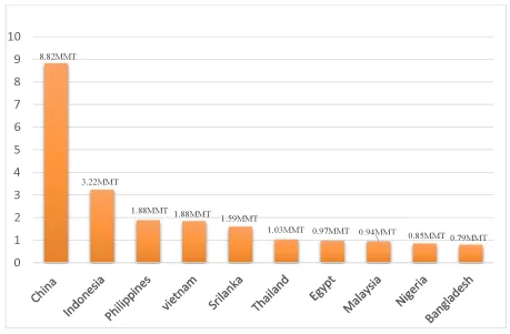 Extensive production of synthetic non-biodegradable plastics which initiated in the last century is contributing about 10% of the total waste disposed of either properly or improperly [11]. Non-biodegradable plastic waste is wreaking havoc for terrestrial and marine environments as large scale pollution [11,12]. A study suggested that China is the largest plastic waste producing country in the world with 8.82 million metric tons per year (Figure 1). An estimate indicated that 10 to 20 million tons of plastics find their way into the oceans annually [3]. Also, plastic debris has not spared Greenland and Barant Seas having hundreds of thousand pieces per square kilometers [3,13]. In addition, the Antarctic Ocean has also been affected by plastic litter. These regions are mainly inhabited by microplastics (< 5 mm) and mesoplastics (< 5 cm) [3,14]. In addition, the level of plastics has escalated six folds in the oceans compared to plankton which poses a serious threat to aquatic life [6]. It is estimated that about 1 million seabirds and 100 thousand marine mammals perish each year, where 44% of all seabirds, 86% of all sea turtles and 43% of all marine mammals and many fish are harmed by swallowing of plastic waste [5].