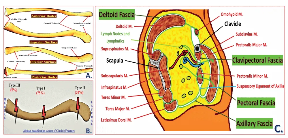 Attention has shifted to safer and simpler options like a fascial plane block to avoid such side effects and complications. Before discussing the fascial plane block for clavicle surgery, it is essential to know different fascias related to the clavicle (Figure1 C) to understand the spread of drugs around the clavicle and neural structures.