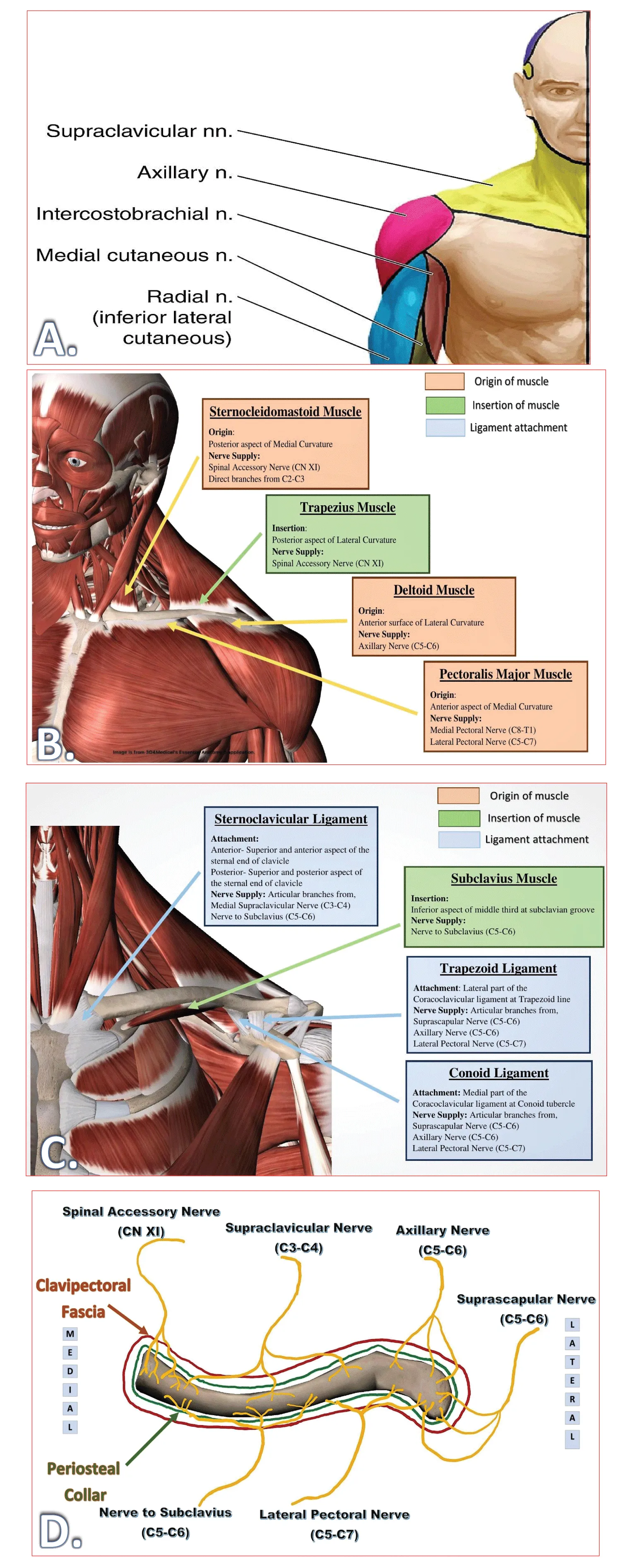 The name ‘clavicle’ is derived from the Latin word Clavicula, which means “little key” because it rotates along its axis like a key when the shoulder is abducted. Fractures of the clavicle are relatively common, accounting for up to 10% of all fractures [1]. Clavicle surgeries can be done under Regional Anesthesia (RA) with or without general anesthesia (GA), depending on the fracture site. Analgesia for clavicle fractures can be challenging for anesthesiologists due to the complex and varied innervation in this region.