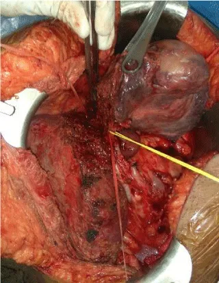 62 years diabetic, hypertensive and obese (body mass Index 38) patient with hepatitis C positive status suffered from pain right side abdomen. She got detected with a liver mass on ultrasonography. There was no history of upper gastrointestinal bleed, abdominal distention or disorientation. She was evaluated further with triphasic CECT liver; which revealed 7X10X8 cm mass in the left liver involving segments II, III & IV. This mass showed an early enhancement in the arterial phase and delayed washout suggesting hepatocellular carcinoma (Figure 1). Underlying liver parenchyma also showed some signs of cirrhosis. PET scan confirmed no distant metastasis. Biochemical analysis reported hemoglobin 13.5 g%, total leukocyte count 7700/ cmm, platelets count 2.56 lac/cmm, serum bilirubin 0.8 mg, prothrombin time 12.3sec and INR 1.08. This patient was classified in Child Pugh class A (score 5). She was evaluated for signs of portal hypertension. Upper gastrointestinal endoscopy was normal and portal vein pressure was 11 mmHg suggesting mild portal hypertension. Future liver remnant by automated liver volumetric analysis for left hepatectomy excluding middle hepatic vein was 76% and for left hepatectomy including middle hepatic vein was 70%.